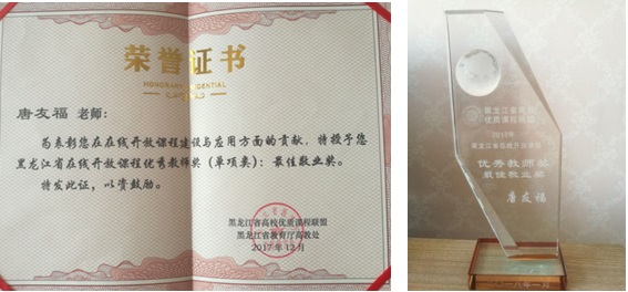 材料力学MOOC负责人唐友福老师荣获“2017年度黑龙江省在线开放课程优秀教师”奖,为我校在线课程建设赢得了荣誉,提高了知名度。