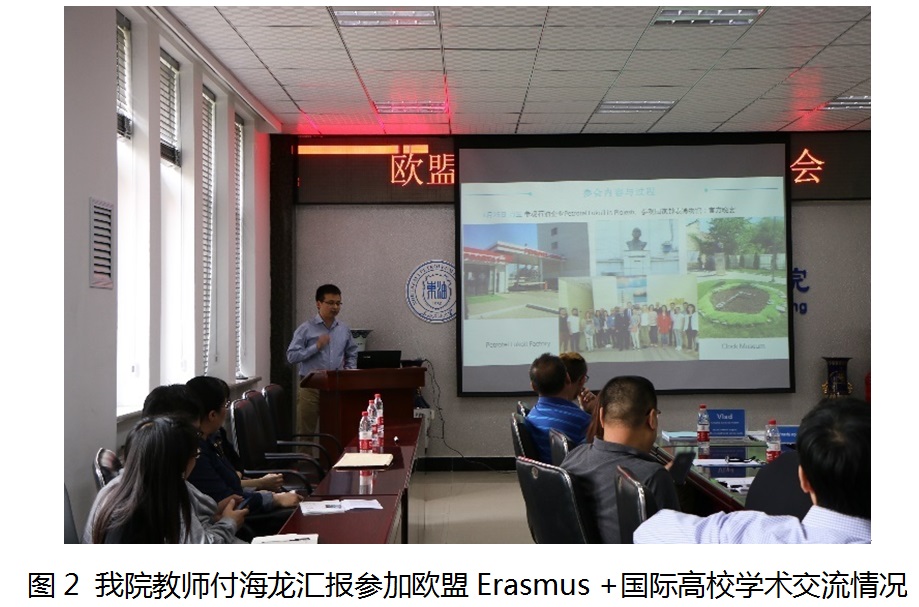 威廉官网中国官方网站教师付海龙代表3位出访罗马尼亚普洛耶什蒂石油和天然气大学教师发言。他首先汇报了参加欧盟Erasmus+国际高校学术与教育交流大会的基本情况,并着重谈了此次参加会议的收获和体会,充分展示了欧盟框架下,世界高校进行国际教育交流强调互动性和多元化的大趋势,用切身感受说明了我校扩大国际合作与交流的必要性和紧迫性。