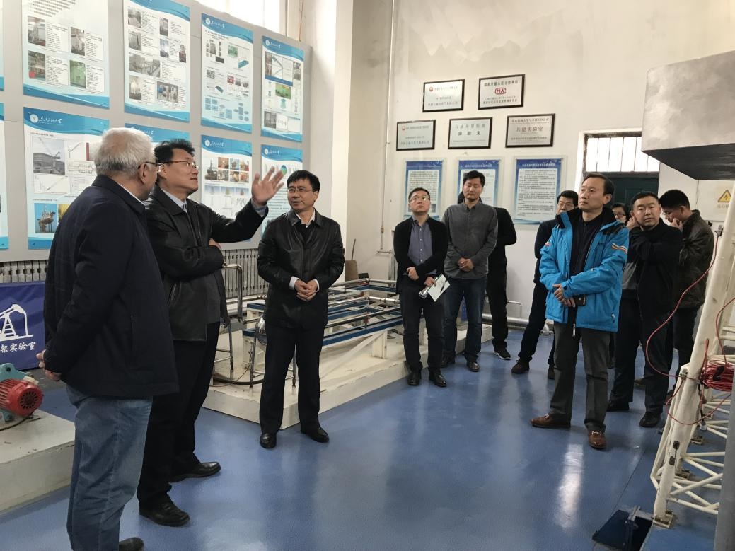 10月25日,学校党委书记孙明学到海洋平台结构与装备检测评价实验室走访参观,机械科学与工程学院书记杨波、院长姜民政陪同。