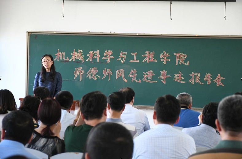 6月21日,机械科学与工程学院党委举办“师德师风先进事迹报告会”。会上,表彰了在“立德树人”工作中先进个人,五位获得师德师风先进个人称号的老师登台演讲。广大教师纷纷表示,要以身边的典型为榜样,以他们的先进事迹为引领,在立德树人、教书育人的工作中,创先争优、建功立业。