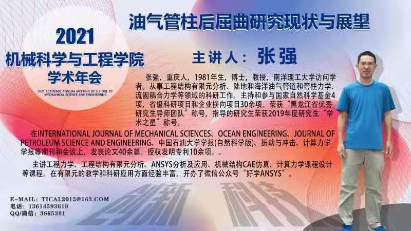 2021威廉官网中国官方网站学术年会第一场讲座将于10月9日下午2点,在二教A119举行。主讲嘉宾:张强教授,讲座主题:油气管柱后屈曲研究现状与展望。