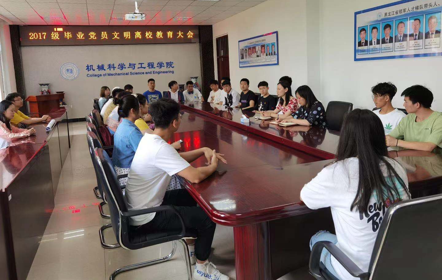 为充分发挥毕业生党员在文明离校工作中的模范带头作用,以实际行动感召和带动周围同学,以良好的心态与精神面貌走上新的工作和学习岗位,6月9日机械科学与工程学院在机电馆428举行了2017级毕业生党员文明离校教育大会大会,院党委副书记齐元俊,大学生第一党支部书记李春燕、大学生第二党支部书记卢梦媚及全体毕业生党员参加了大会,大会由卢梦媚主持。