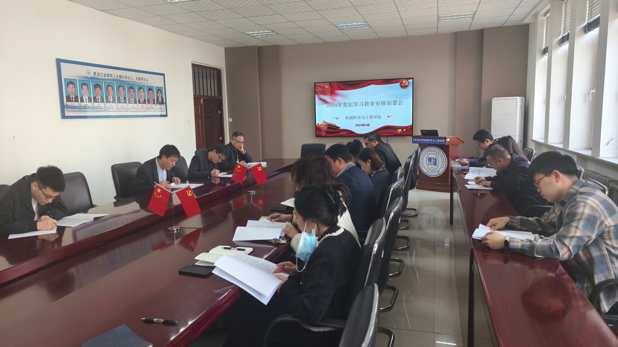 王勇书记根据学校《关于在全校开展党纪学习教育的实施方案》的通知要求,对学院党纪学习教育作具体安排部署。要求,要原原本本学《中国共产党纪律处分条例》,党委会议和支部会议要深化“第一议题”学习和研讨,领导干部参加专题读书班,党员要抓实抓好个人自学,制定自学计划。要坚持理论学习中心组学习,积极开展党纪学习教育主题党日,班子成员要在所在支部讲廉政纪律党课,强化党纪教育。要开展警示教育活动,深刻剖析典型案例。建设廉政宣传文化墙,深化新时代廉洁文化建设。要开展《条例》网络学习和解读,深化理解运用。在学院网站和微信公众号,开通党纪学习教育专题,加强媒体宣传。开展党员干部培训,强化党员纪律意识。要对照《条例》检视问题,开好年度民主生活会和组织生活会。