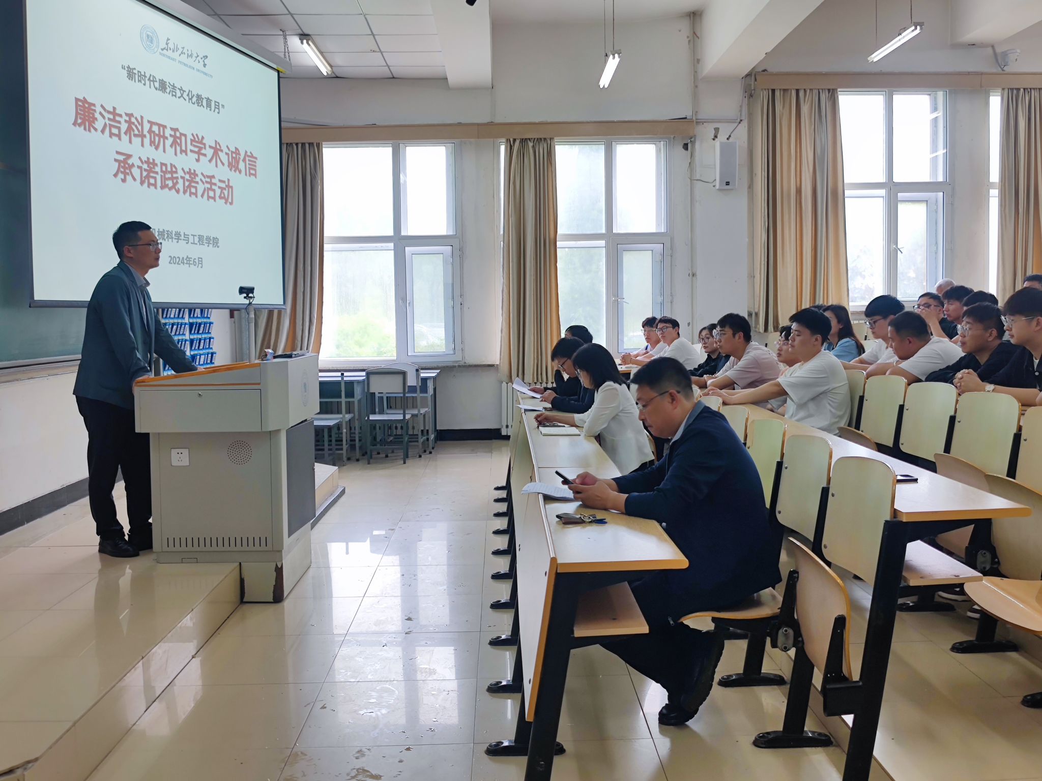 副院长董康兴开展了廉洁科研和学术诚信承诺践诺活动,专题学习科研经费使用管理相关文件精神,通过传达《教育部关于加强高等学校科研诚信建设和学术不端治理的指导性意见》、《高等学校学术不端行为调查处理实施细则》等文件,强调在科研项目执行和管理过程中遵守科研诚信规范,明晰底线、知止存畏,防范科研经费违规使用问题的发生。科研人员要对科研失信行为及其严重后果高度认识,要进一步提升科研诚信意识,做真科研、真学术、真贡献。