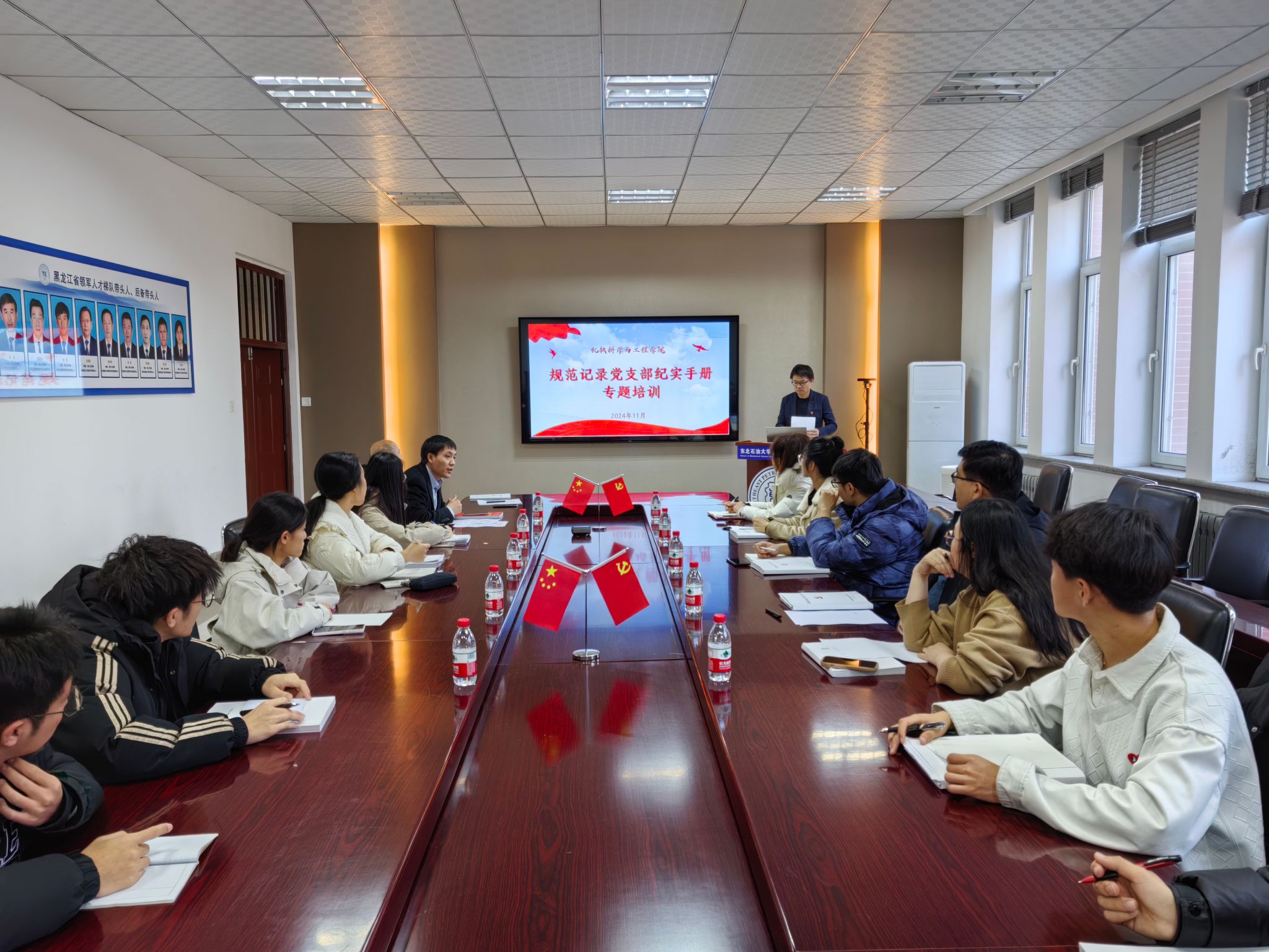 为深入学习贯彻党的二十届三中全会精神,进一步夯实基层党建工作基础,强化基层党务工作者业务能力,提升基层党建工作标准化、规范化水平,学院党委于11月6日开展基层党组织党建业务规范化专题培训,就规范记录《党支部工作纪实手册》作专题辅导。学院党委书记王勇、党委副书记闫超及全体师生党支部委员出席本次培训,专题培训由闫超负责主讲。