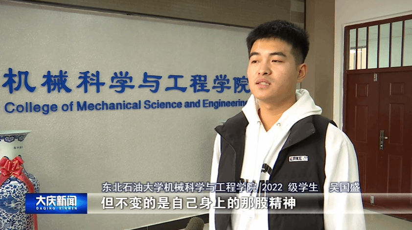 威廉官网中国官方网站2022级退伍大学生吴国盛接受大庆电视台采访,其事迹入选大庆市退役军人先进典型系列宣传片。
